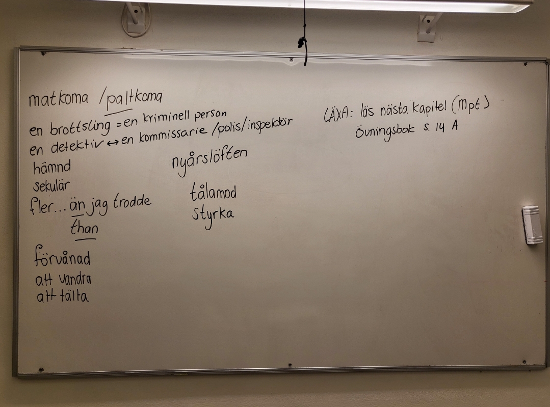 Läxa: läs nästa kapitel i Mannen på taket och gör: Övningsbok s. 14 A.