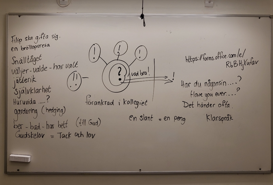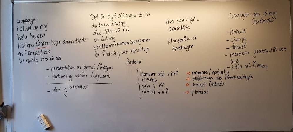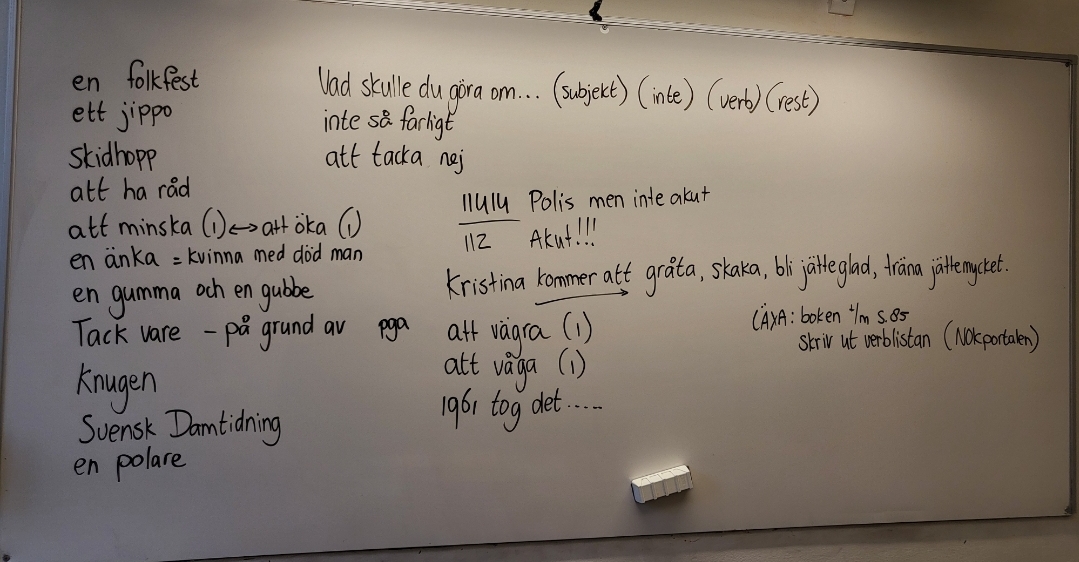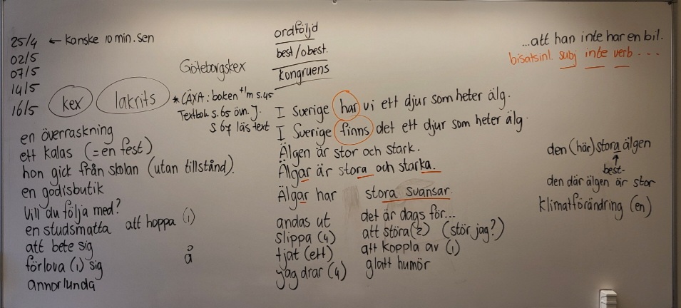Läxa till nästa lektion (7 maj): skriv ut verblistan från NOKportalen och markera de verben som du kommer att använda mycket.