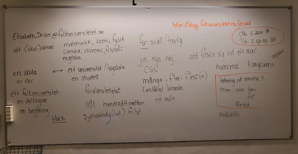 Läxor: övningsbok s. 8 (D), s. 9