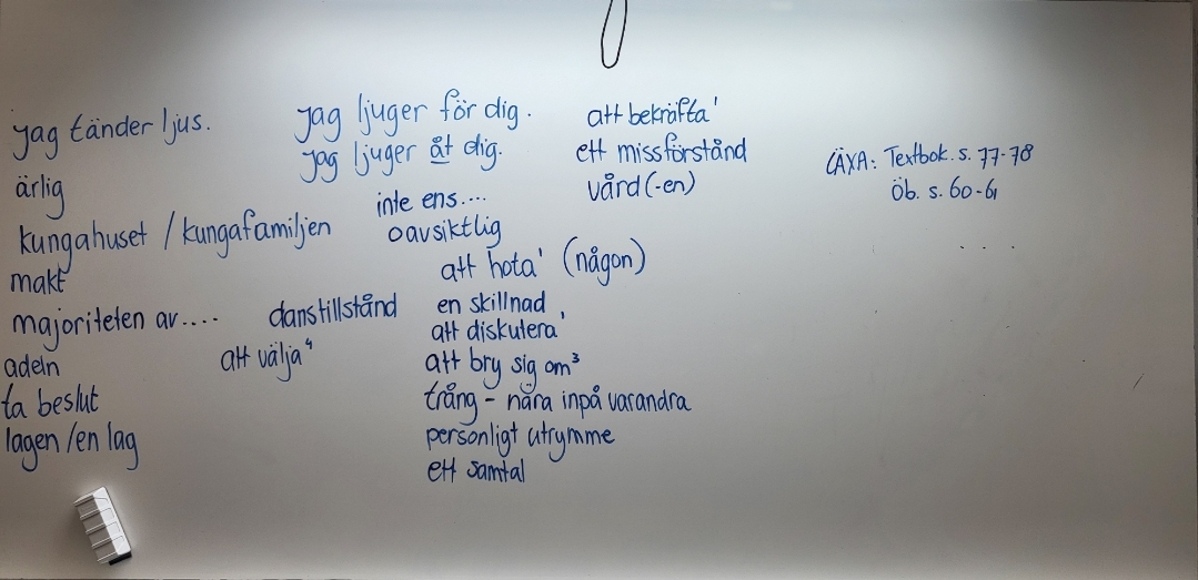 Idag har vi pratat om Sveriges historia. Läxa: Övningsbok s. 75-76 och s. 80. Ta med papper och penna: ni kommer att få en kort skrivuppgift på lektionen imorgon.