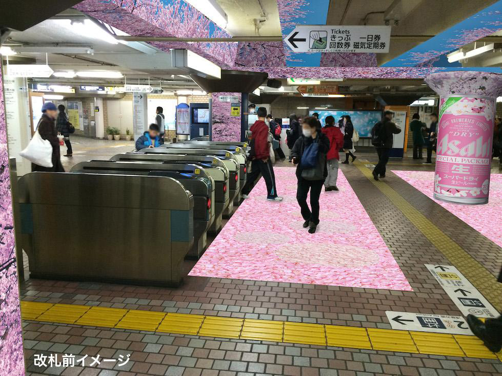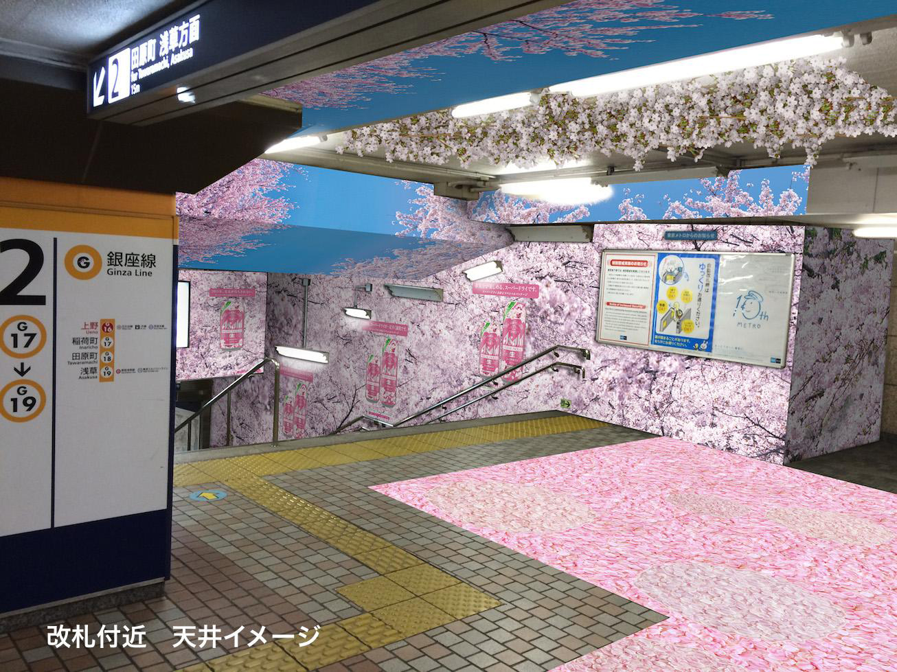 Ueno station (Ginza-linje) i Tokyo med temat, “sakura”.