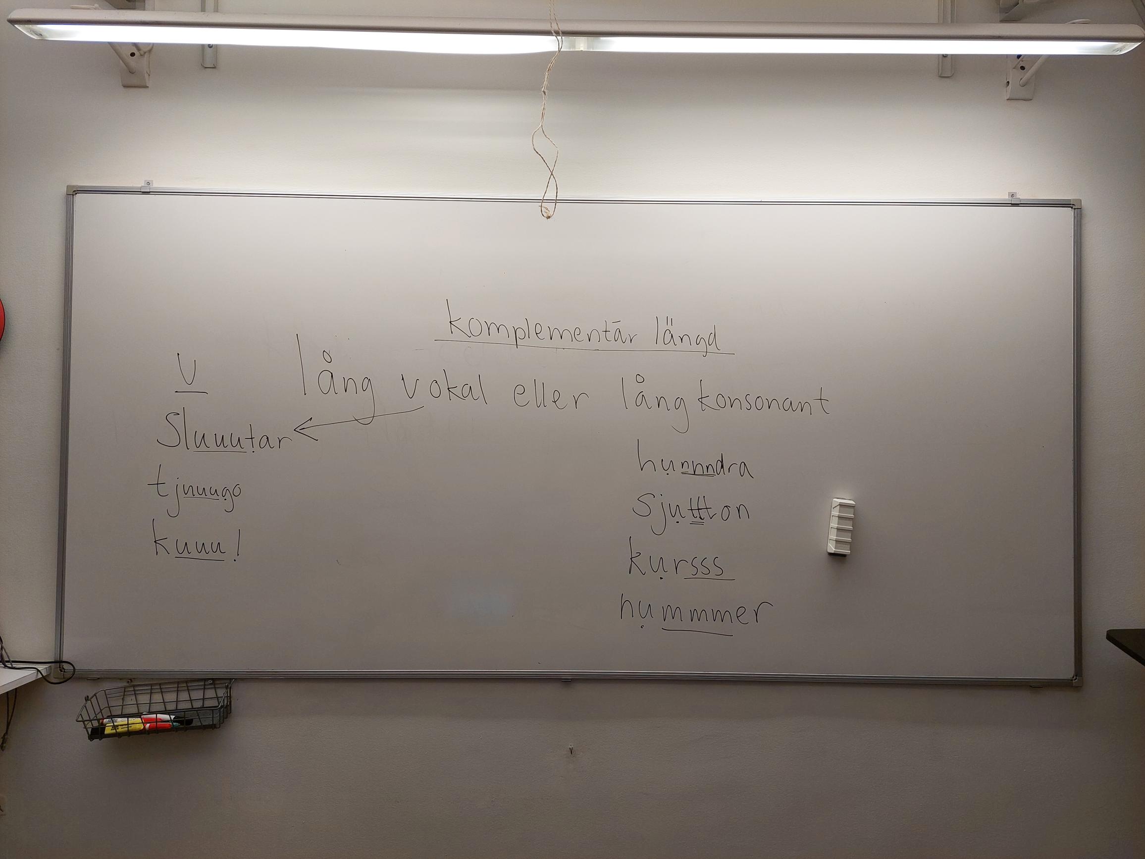 - Vi gjorde övningar på lång vokal + lång konsonant (TB.s.73+ s. 86 + s.100).
